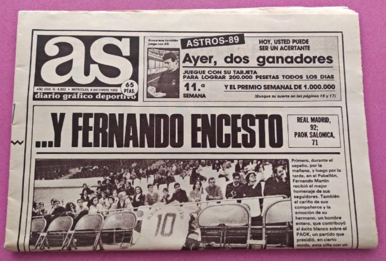Δυστυχώς για την παγκόσμια μπασκετική κοινότητα, ο Φερνάντο δεν εμφανίζεται στα αποδυτήρια και στις 3 Δεκεμβρίου του ίδιους έτους. Σε εποχή προ κινητής τηλεφωνίας, μια τρομερή φήμη εξαπλώνεται εκείνο το απόγευμα από στόμα σε στόμα και φτάνει μέχρι την αίθουσα του Palacio de Deportes, όπου προετοιμάζονται οι παίκτες της «Βασίλισσας» για την αναμέτρηση με τη Σαραγόσα.
