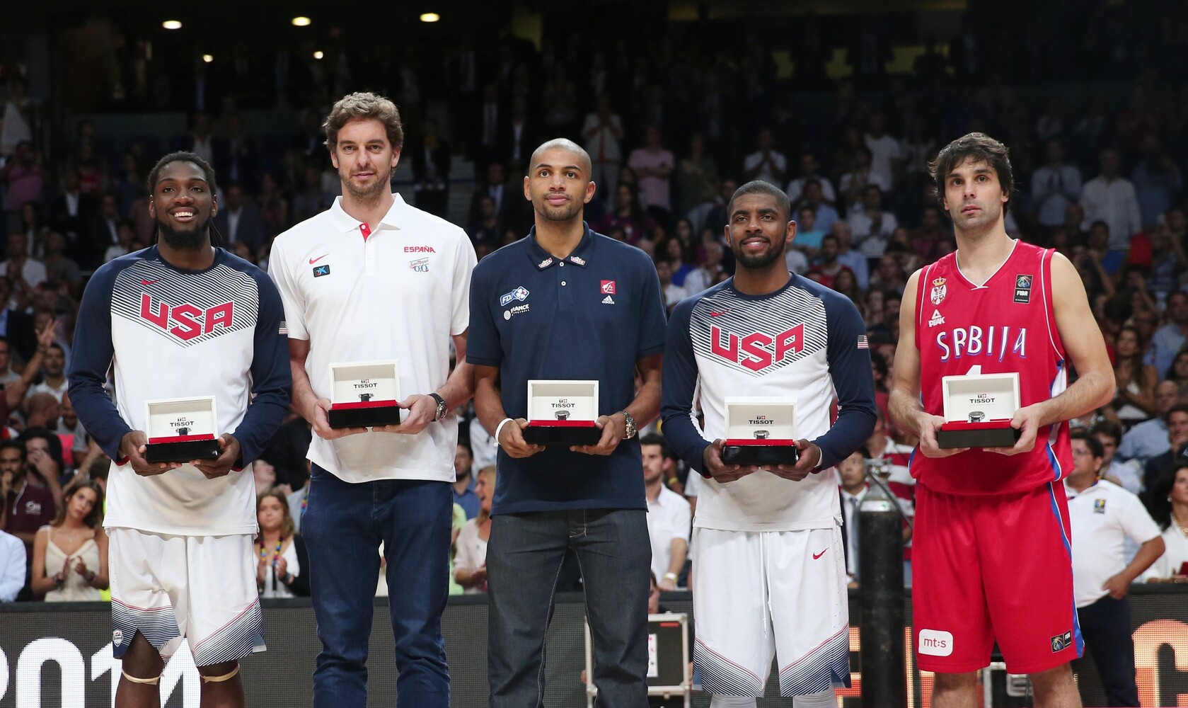 Σεπτέμβριος 2014: Η καλύτερη πεντάδα του Παγκόσμιου Πρωταθλήματος, αποτελούμενη από τους Κένεθ Φαρίντ, Πάου Γκασόλ, Νικολά Μπατούμ, Κάιρι Ίρβινγκ και Μίλος Τεόντοσιτς / Photo by: INTIME.