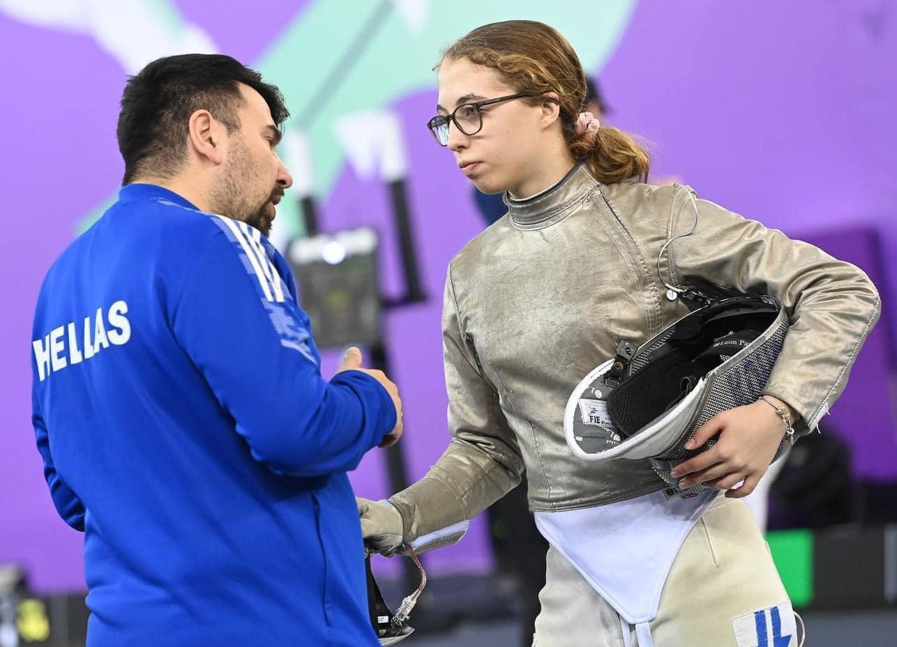Η Αλίνα Κουρούση και ο προπονητής ξιφασκίας, Γιάννης Νοταράς / Photo by: Hellenic Fencing Federation (FB).