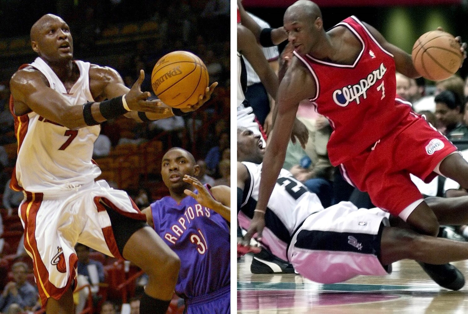 Ιανουάριος 2004 – Μάρτιος 2004: Ο Λαμάρ Όντομ με τις φανέλες των Λος Άντζελες Κλίπερς (δεξιά) και των Μαϊάμι Χιτ / Photos by: Eurokinissi (AP-EPA).