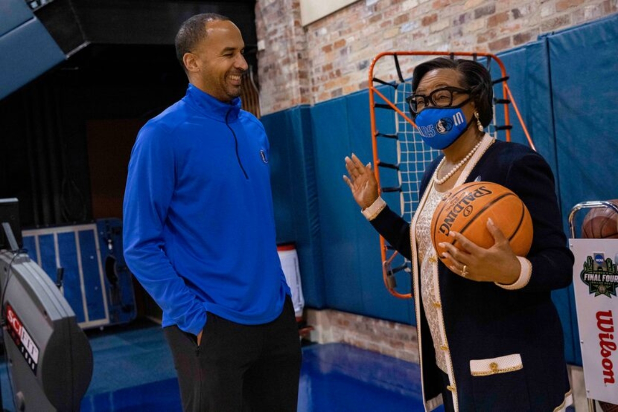 Ο Νίκο Χάρισον με την CEO των Ντάλας Μάβερικς, Σιντ Μάρσαλ, στo American Airlines Center.