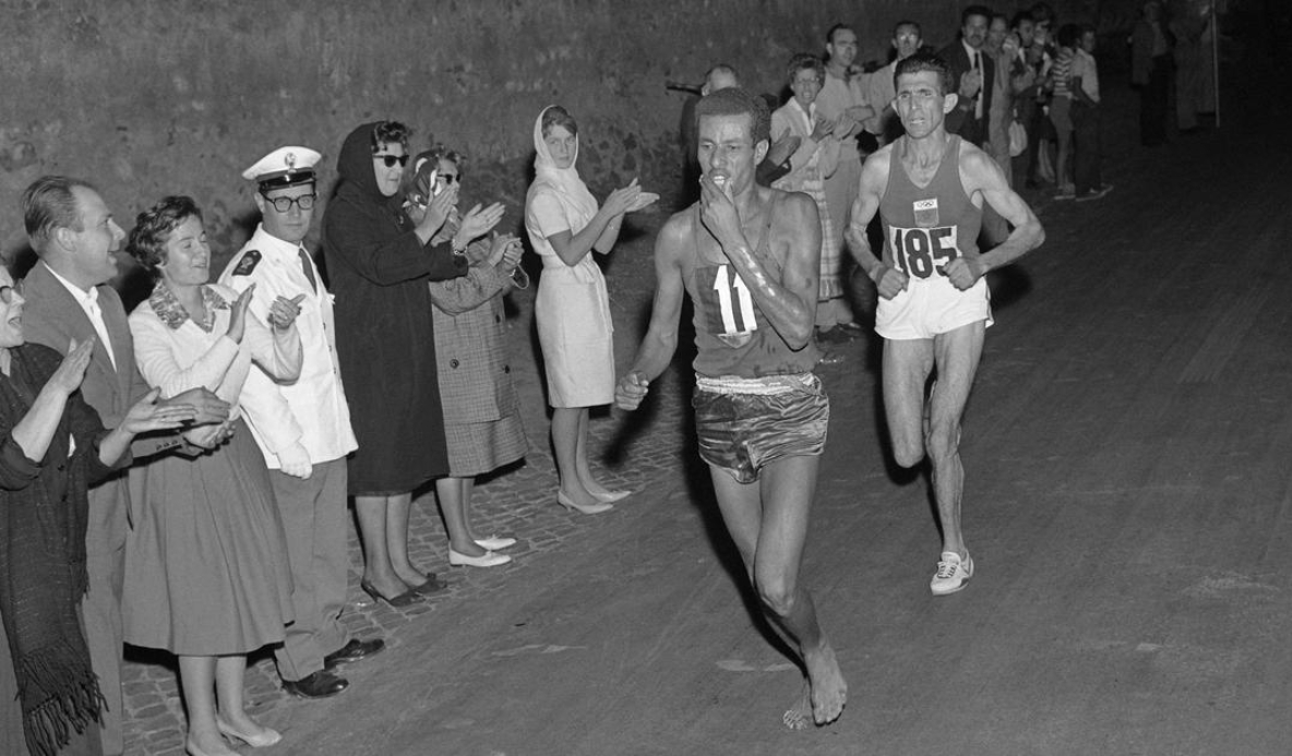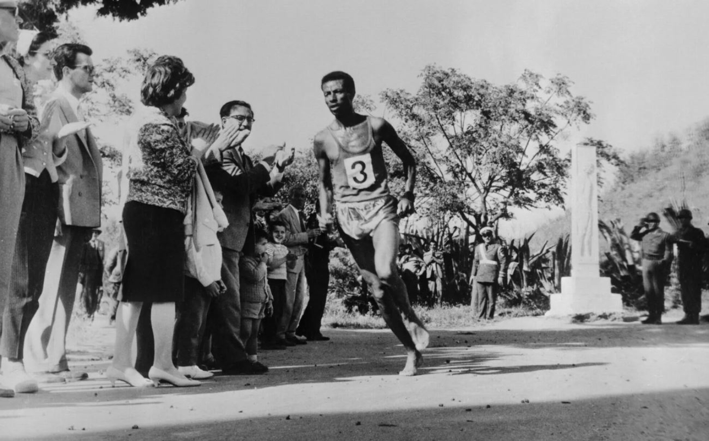 Ο Αμπέμπε Μπικίλα στους δρόμους της Ρώμης στους Ολυμπιακούς Αγώνες του 1960.