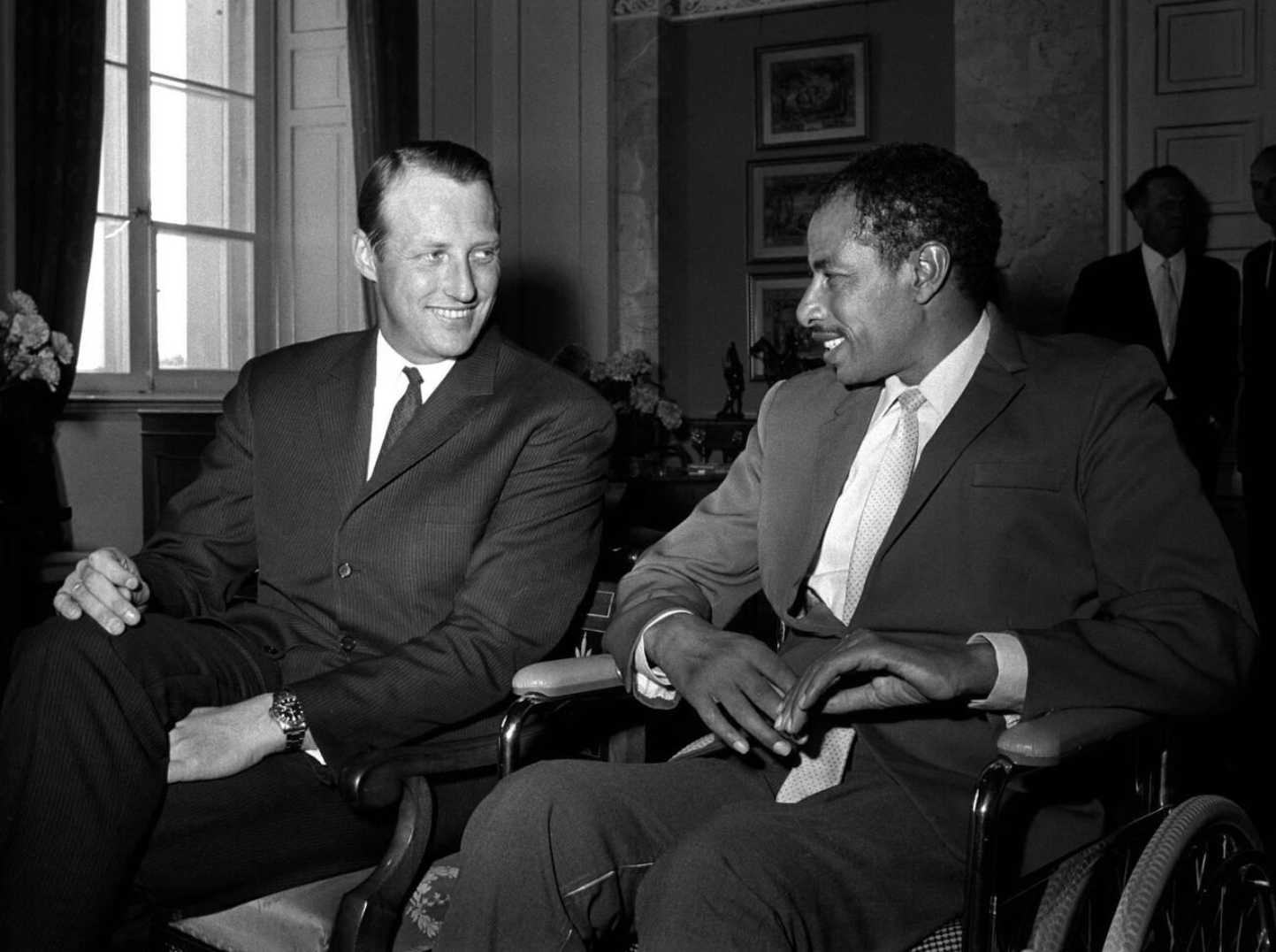 Όσλο 1971: Ο Αμπέμπε Μπικίλα, ήδη τρία χρόνια σε αναπηρικό αμαξίδιο, συναντά τον Πρίγκιπα Χάραλντ της Νορβηγίας.
