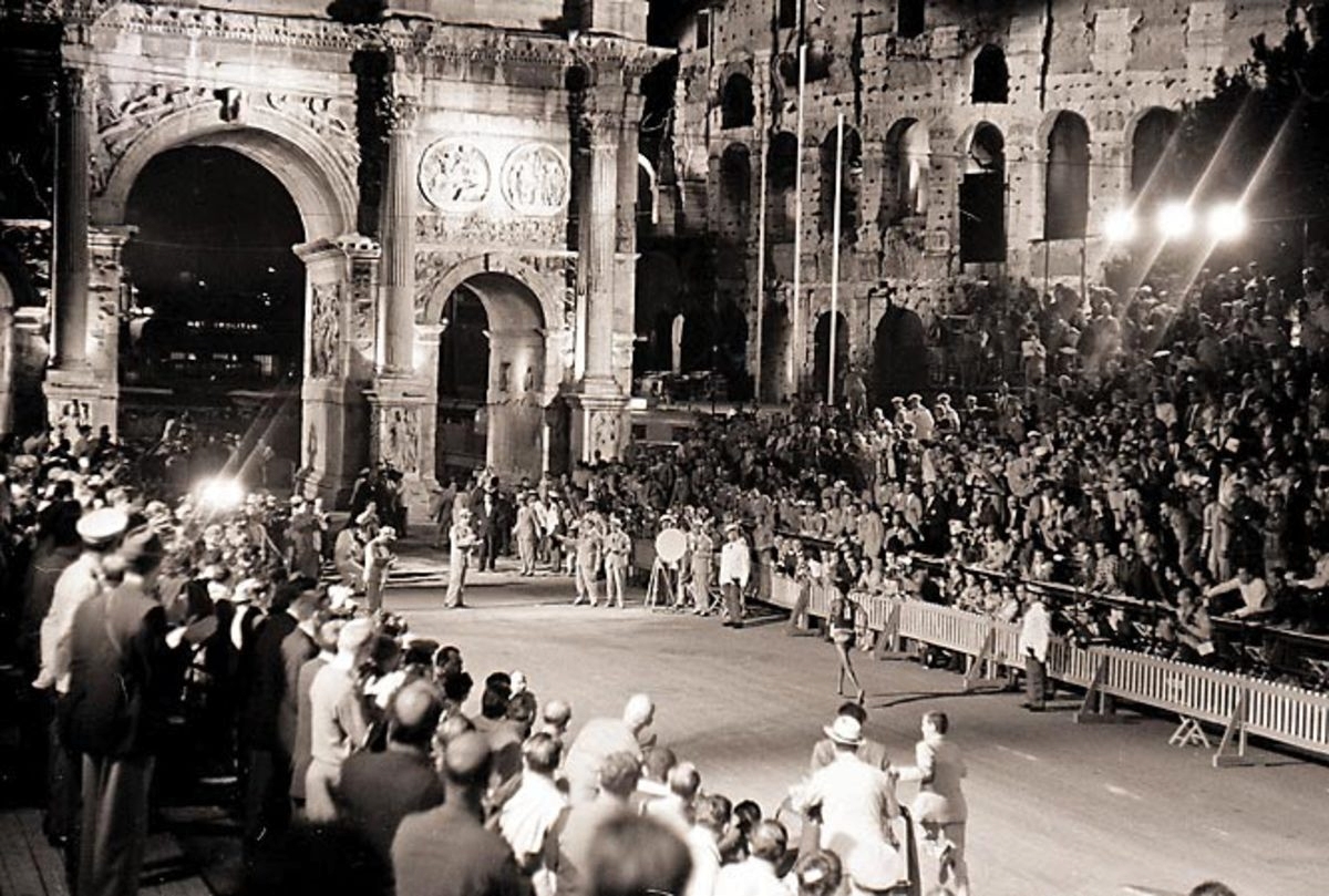 Ο τερματισμός του Αμπέμπε Μπικίλα στην Αψίδα του Κωνσταντίνου στους Ολυμπιακούς Αγώνες της Ρώμης το 1960.